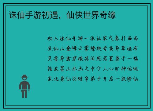 诛仙手游初遇,仙侠世界奇缘
